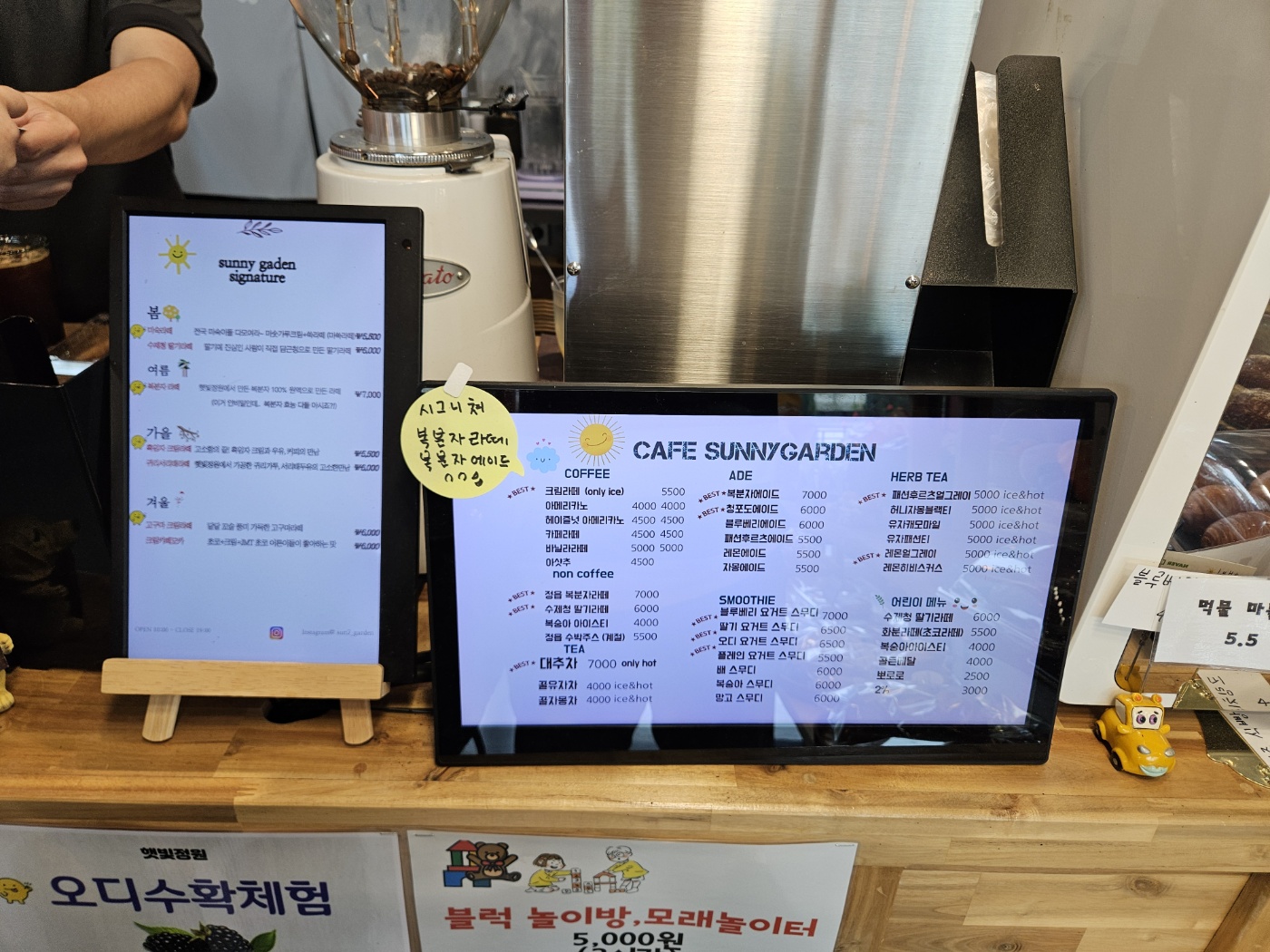 입구에서 들어오면 카운터에 토끼도 있어요. 동물 좋아하는 아이들이 있다면 무척이나 좋아할 것 같네요. 그리고 햇빛정원에서 체험할 수 있는 오디도 따로 판매하고 있어요. 맛보기로 오디도 주셨는데 맛있어서^^ 아이들과 체험하길로 결정했습니다.